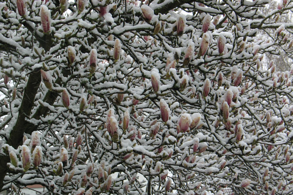Ein ganz und gar ungewöhnliches Bild ... Magnolien im Schnee.