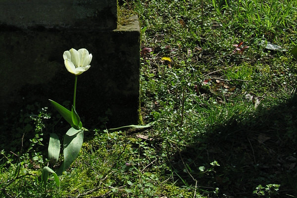 Mit einer weißen Tulpe grüßt eine Seele aus der anderen Welt