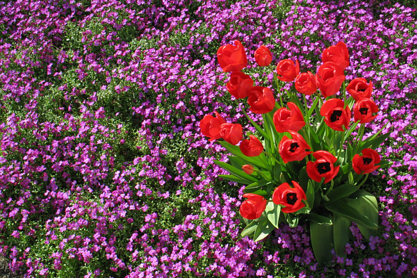 so möchte ich einmal im Jahr diese roten Tulpen vor violettem