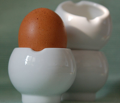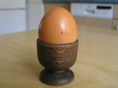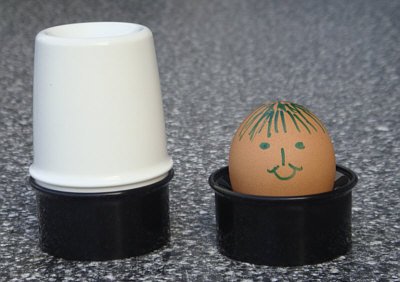 Einer der praktischen Eierbecher mit integrierter Schale für die Schale.