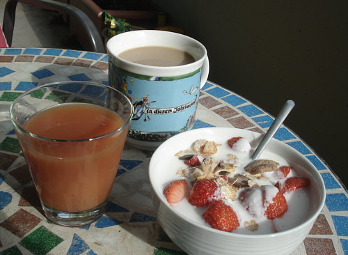 Sonniges Müsli auf dem Balkon ... ja, so lässt sichs leben :)).