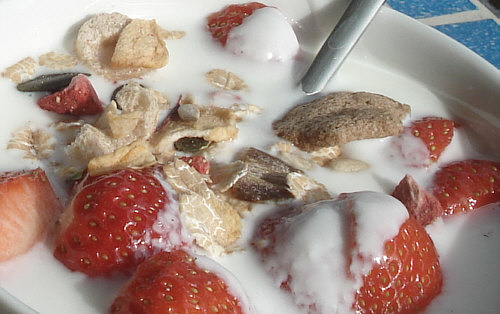 Im Müsli sind auf jeden Fall Erdbeeren ... und andere Dinge ;)).