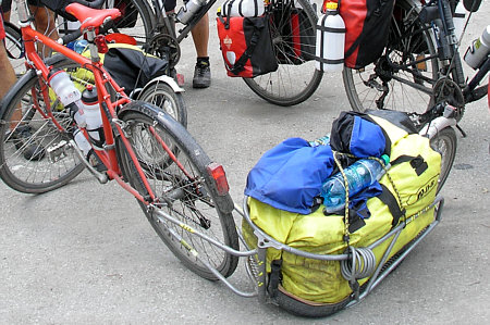 Diese haben übrigens solche Bob-Anhänger hinten am Rad.