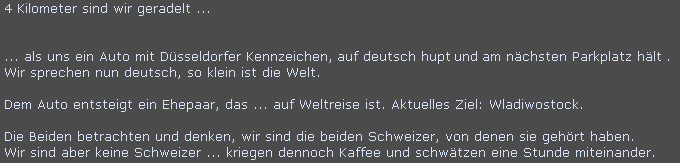 8000 Kilometer sind wir schon gefahren und dennoch liegen immer noch