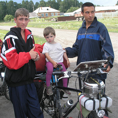 Rucksacktouristen aus Minsk, die per Anhalter zum Baikalsee wollen.