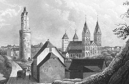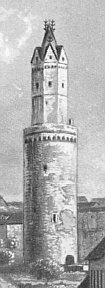 Links der Turm, 1840 gemalt, und rechts ein Bild aus Wikipedia