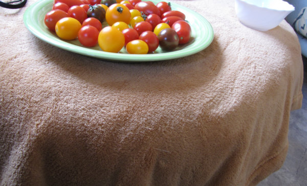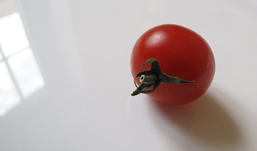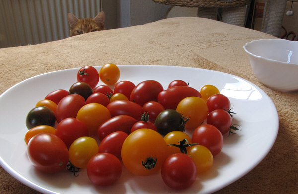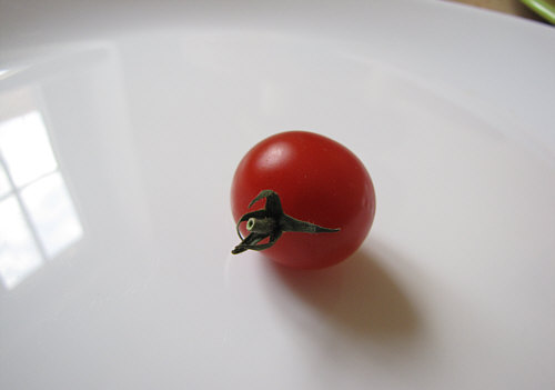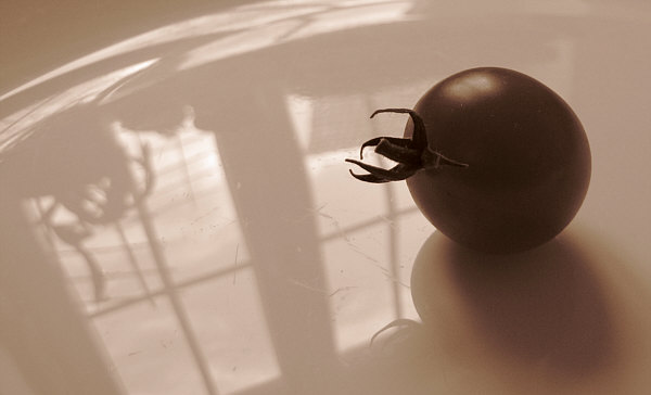 Heute nicht Hilde ... weil ich ... kein Schreibautomat bin. War gestern fast den ganzen Tag nicht da und die Geschichte ist ja noch nicht fertig geschrieben. Das passiert immer spontan ... auch wenn bestimmte Dinge oder Pointen feststehen. Heute gibt es erstmal den ... ... Tatort Tomate: ![]() Der ist in der guten Stube zu finden. Ich sitze auf dem Sessel, vor mir ein gepolsterter Beistellhocker. Auf dem eine Decke, darauf die Tomaten ... von oben sieht das so aus: ![]() Unten meine unteren Beine, dann noch Taschenlampe und Schüssel. Ach ja, der grüne Teller steht auf dem Boden. Für kurze Zeit kommt der Regisseur vorbei und schaut sich das Ganze an: ![]() Siehts, sagt "ist okay so" und geht wieder. Tja, der Herr mit den Steheohren ißt eben keine Tomaten ;)). Zurück zu den Tomaten ... der Film kann beginnen ... und der große Strahler ist auch schon da: ![]() Wie ... das ist kein großer Strahler, sondern nur eine kleine Taschenlampe ?? Ach was ... das ist ein großer Regiestrahler: ![]() Tja, die moderne Technik macht es möglich ;)). Nun aber zu den Tomaten ... die haben solche kleinen grünen Börzelchen. ![]() Kann man die auch fotografieren ... wenn ja, mit oder ohne Lampe ?? Probieren wirs mal mit: ![]() Hmm ... ungewöhnlich ... und leider überstrahlt. ![]() Schon besser ... man sieht schön die ganz kleinen Härchen. Aber keine Angst, das ißt man ja nicht mit, bitte keine Irgendwie werde ich aber nicht so ganz glücklich mit der Beleuchtung, lassen wir die Taschenlampe doch mal weg: ![]() Auch nicht besser ... im Gegenteil, eher schlechter. Doch ... oha ... wenn ich die Farbe wegnehme, dann ... ![]() ... sieht das aus wie Stoff, der aus einer Motorhaube wächst ... verblüffend. Jetzt auch noch invertieren ? ![]() Nee ... das ist dann doch zuviel des Guten ... sieht aus wie der Ultraschall von einem vergessenen Oberationsobjekt oder so. Dann lieber mal endlich anfangen, eine Tomate zu fotografieren: ![]() Soll ich ehrlich sein ... schön aufgeräumt, scharfes Bild ... und langweilig. Wie diese modernen Küchen ohne Leben, Liebe und Krümel. Das ganze Bild sieht so aus: ![]() Hmm .. die Spiegelung links ... vom Fenster ... die ist blöd. Schließlich will ich die Tomate fotografieren und nicht das Fensterlicht. Aber ich kanns nun mal nicht verhindern, dass es hell nur durch das Fenster scheint, denn durch die geschlossene Wand, dass hat Licht noch nicht gelernt. Aber man könnte ja aus der Not eine Tugend machen und das Licht einfach ins Bild integrieren: ![]() Neenee ... das ist noch nicht das, was mir so vor meinem geistigen Auge rumschwebt ... dazu muss die Farbe raus, denn die lenkt einfach ab und das ganze muss weniger belichtet werden: ![]() So ist das schon ausgewogener ... und wenn vielleicht auch nicht für jeden schön, so doch mal etwas anderes fürs Auge. Man könnte auch den Ausschnitt so verändern, dass man die Pflanze auf der Fensterbank sieht: ![]() Also spricht der Börzel mit der Pflanze. Aber etwas anderes fällt auf: man sieht jeden Sch...dr.ck auf solchen Bildern. Nicht gleich, sondern erst später auf der Festplatte. Da fällt dann jeder Mini-Krümel, jeder Flusel und jeder Kratzer auf dem Teller auf. Und dann guckt man auch noch automatisch hin ... brrrmmml. Nehmen wir mal eine andere Tomate ... die in gelboval: ![]() Schönes optisches Gespräch zwischen eckigem Fenster und ovaler Tomate. Dagegen ist die runde orangefarbige Tomate ... ![]() ... auf einfach nur weiß ... wieder mal langweilig. Aber es gibt ja viele Möglichkeiten ... man kann den Ausschnitt wechseln ... oder auch ... ... den Untergrund: ![]() Legen wir die Tomate einfach auf einen Teller mit Spiralmuster. Ganz ganz schwierig ... nicht das Legen, sonder die Entscheidung, ob wir die Tomate in die Mitte, an den Rand oder wie überhaupt legen. Nach längerem Probieren war die obige Position die Beste. Wie aber nun den Bildausschnitt wählen ... so ... ![]() oder so ?? ![]() Letzteres ... aber passt hellgrün wirklich zu orange ? Jetzt kommt die dritte Option ... die nur mit Hilfe des PCs machbar ist ... die Bildbearbeitung: Man(n) kann auch hier die Farbe rausnehmen ... ![]() ... und feststellen, dass die Tomate zur Metallkugel wird. Aber nicht wirklich ... nur beinahe. Auch wenn sie rot leuchtet ... ![]() ... sieht sie nicht wie eine Glühbirne aus ... aber auch nicht mehr wie eine Tomate. Der schwarze Punkt stört ... brrmmml. In Blauviolett ... ![]() ... stört der Punkt genauso. |