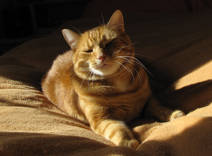 Wie Garfield sitzt er da ... leicht motzend, weil da zwei dienstbare