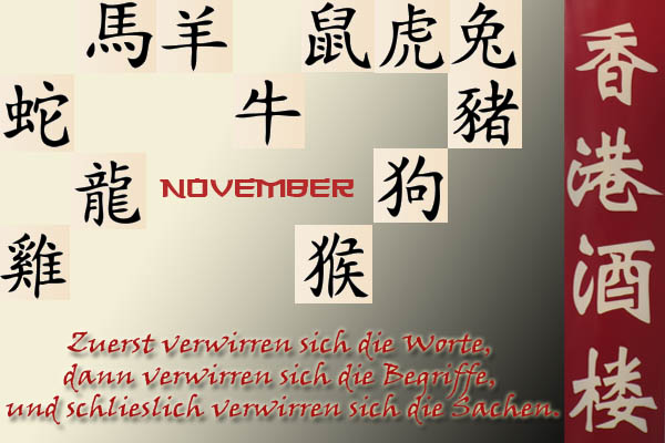 Das Experiment, die Kalenderblätter November unter das Motto "China" zu
