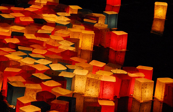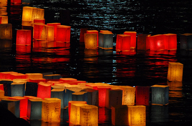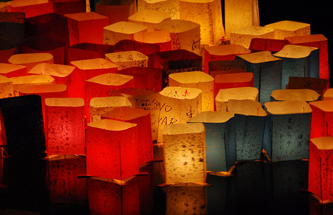 Jedes Jahr schwimmen zum Gedenken an Hiroshima