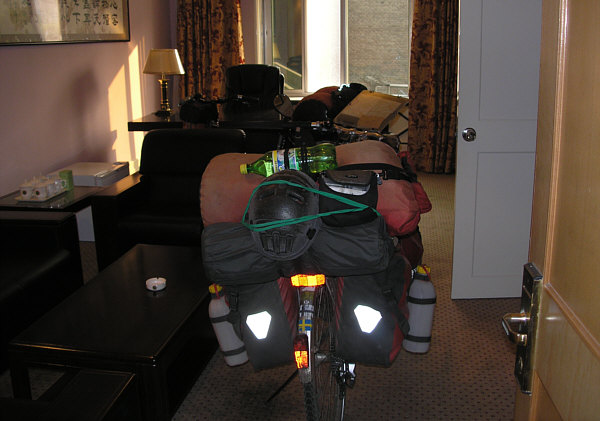 und finden ein richtig schönes Zimmer, in das wir sogar die Fahrräder