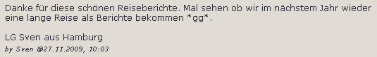 Sven wird mir seine Berichte und Bilder regelmäßig via Handy per Mail