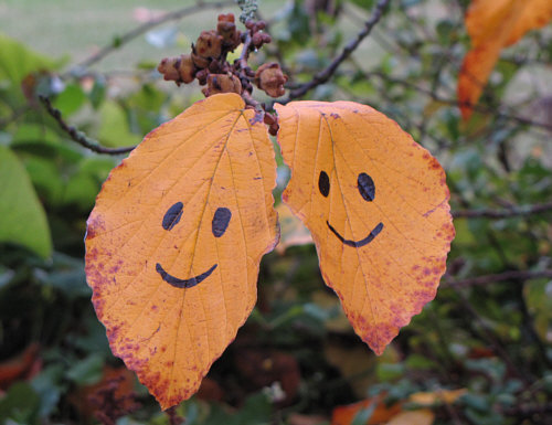 auf die gleiche Idee kommen und Gesichter auf Blätter malen.