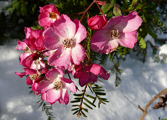 im letzten Jahr gabs Sonne, Schnee und immer noch blühende Heckenrosen