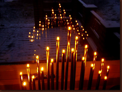 vielen Kerzen und den typischen Lichtpyramiden, die in den dunkelsten