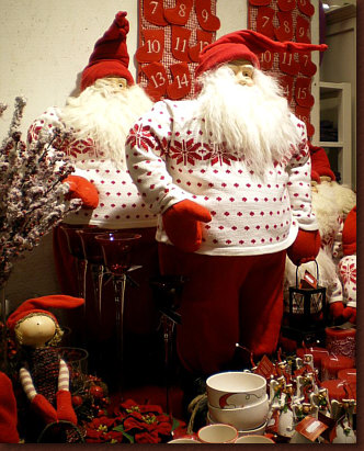 Weihnachtsmännern und Weihnachtszwergen (sie heißen Nisse) in allen