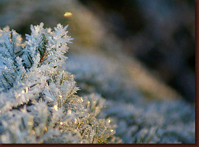 ein paar Tagen kalt und klar. Es liegt Raureif, der die Bäume und