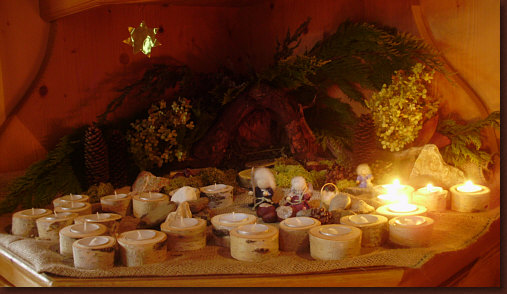 Vier Lichter und ein Stern waren es gestern ... ... und heute wird es erneute heller in Marias Krippe: In der Mitte hat sich eine Figur hinzu gesellt ... ... es ist ein Hirte mit seinem Stab. weiter