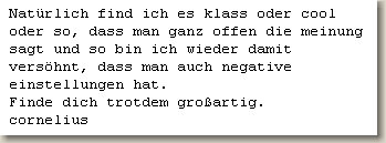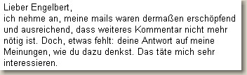 Mail mit ein, zwei kritischen Sätzen ... aber im Grunde Deines Herzens