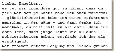 Ich hab Dir (wie vielen anderen) oft nicht geantwortet und Du bist