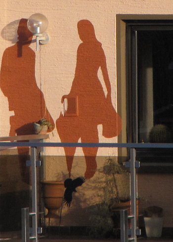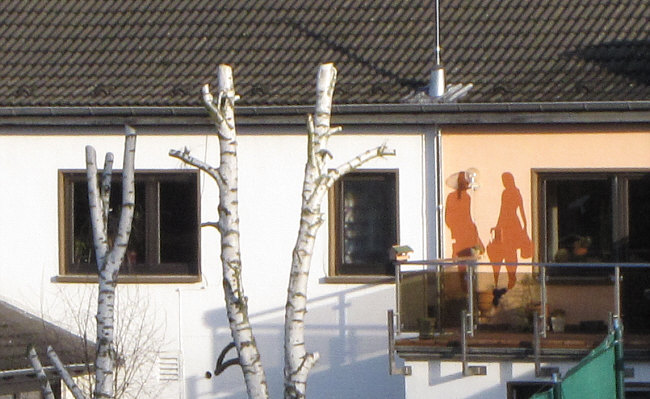 Foto-Spaziergang Teil 3 (Teil 1, Teil 2) Hier waren wir stehen geblieben ... ![]() ... beim Haus des Bischoffs ;)). Von dort oben hat man eine richtig gute Aussicht: ![]() Wenn unseren Blick etwas nach rechts schwenken ... ![]() ... wandert die Kirche in den linken Teil des Bildes und das Auge entdeckt etwas. Ist hier auf dem Bild zu klein, aber genau dort zu finden: ![]() Mit dem Auge fiel das mehr auf, darum hab ich meinen Zoom ausgefahren und das mal näher rangeholt: ![]() Abgeschnittene Birken und Kunst an der Hauswand. Letztere interessiert mich im Moment mehr ... mal so nah wie möglich ranholen: ![]() Hmm ... "der Lampenmann und seine Verflossene" ... oder so ähnlich. Irgendwie hätte man doch für die Lampe einen anderen Platz finden können. Ich wüsste zu gerne mehr über diese Kunst, die da unten irgendwo auf dem Balkon zu finden war. Aber mehr als raten und spekulieren kann ich nicht ... also gehen wir weiter. Über die Treppen vor der Kirche ... und genau dort finde ich ein paar gelbe Lichtpunkte: ![]() Quitten ... wenn sie zu Marmelade werden, ist das eine von vielen sehr geschätzte Sache. Weit weniger geschätzt wird, wenn sich Teile einer Jacke selbständig machen: ![]() Nun ja ... hält nix ewig ... und manches geht noch viel schneller kaputt. Ach hallo Kirche ... ![]() ... auch mal wieder im Blickfeld ... weißte was ... zu dir gehe ich auch noch. Das gibt dann eine Zweikirchenwanderung ... auf ziemlich glatten Straßen übrigens. Das sah alles so harmlos aus ... aber Reifglätte war ein ganz großes Thema an diesem doch eigentlich schönen Tag ... mit kalten Straßen eben. ![]() Nochmal Kunst an Gitter ... und dann das: ![]() Sehr rätselhaft, was da an der Hauswand hängt ... und gleich daneben, das ist ... ![]() ... noch viel rätselhafter. Was ist das ? Eine Lore ... aber sind wir denn hier im Bergwerk oder was ? Ist hinter der nächsten Ecke ein Stollen, den man nicht essen kann, zu finden ? Oder ist das nur Deko eines Bergwerksbegeisterten ? Oder wohnt hier jemand, der das ganze Leben unter Tage gearbeitet hat ? Aber wir sind hier in einer Gegend, in der weit und breit kein Bergwerk ist und war. Was will uns das sagen ... seltsam seltsam ... sehr rätselhaft das alles. [ wir laufen bald weiter ] |