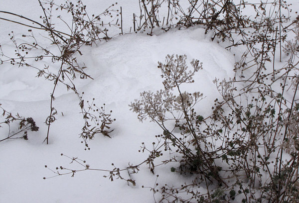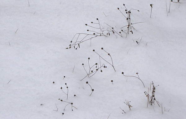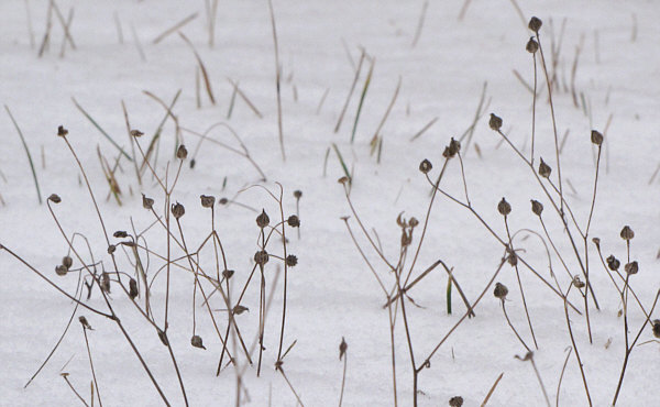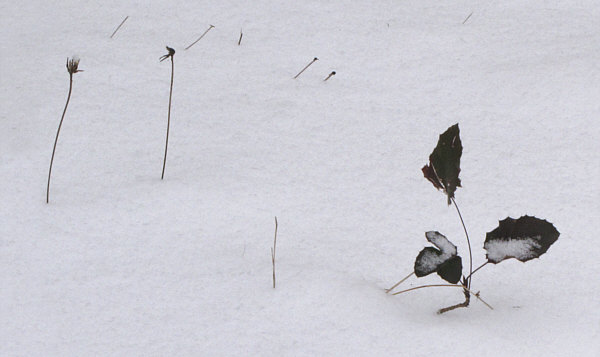 ![]() Nee ... dieser Gedanke war mein erster Gedanke, aber er stimmt so nicht. Der Winter raubt gar nix ... denn auch im Winter ist das Gras grün. Darum ![]() Stimmt aber ebenfalls nicht ... denn der Schnee raubt ja nicht, sondern legt sich halt einfach auf alles drauf. Also: Es gibt auch farbige Raufaser ... ja, iss ja gut. Soll auch gar nicht so lustig werden heute ... ist doch ernst, wenn man in die Welt guckt und Schwarz-Weiß-Gedanken kriegt. Ja, ich könnte jetzt ein rotes Glasherz auf den Schnee legen und würde feststellen, dass gerade das Weiß des Schnees die Farben noch besser leuchten lässt ... aber ... in den schneebedeckten Vorgärten dieser Winterwelt liegt nun mal kein rotes Glasherz auf dem Schnee. Da ist wirklich alles Grün verschwunden und man glaubt, die Welt wäre ein Schwarzweißbild. Ich rede jetzt von der Natur ... nicht von dem hellblauen Haus, dem gelben Postauto und der roten Jacke von Frau Müller. Wenn Schnee liegt, zeigt uns die Natur viel Weiß, ein paar Grauschatten und viel Dunkelgrau und Schwarz ... so sieht das aus: ![]() Deswegen freuen sich die meisten ja so, wenn die ersten bunten Krokusse das Frühlingslicht der Welt erblicken. Das Grün ... dieses die Welt so bestimmende Grün ... ist weg. Das Braun der Erde genauso ... auch die Äcker sind schneebedeckt. Schnee ... der ist reichlich da ... doch der ist eben nur weiß. Für Farbenmenschen eine karge Zeit. Aaaaaber ... das, was die Farbe nimmt, schenkt uns Strukturen dafür. Oder ... kein Schlechtes ohne sein Gutes. Das eine fehlt, doch das andere gibt es nur zu dieser Zeit. Solche Bilder ... ![]() ... kann man ohne Schnee gar nicht fotografieren. ![]() Die Welt wird zur modernen Kunst ... großer Auftritt für kleine Halme. ![]() Stellt Euch vor, das Weiße wäre grün ... da würden diese trockenen Gräsererinnerungen vom alten Jahr gar nicht auffallen. Das, was von den Rosen noch geblieben ist ... ![]() ... wird zum bizarren Kunstwerk im Schnee. Es ist so überraschend schön, was man sieht ... so grazil ... ein Land, das man neu entdecken darf. Ein Land auf Zeit, ein Wintergeschenk der Natur. Mal klein und elegant und mal in seiner ganzen Vielfalt: ![]() Ein einzelnes Blatt, das man sonst übersieht ... oder sogar als lästig ungepflegt oder "alt, arm und klein" empfindet, wird im Schnee ... ![]() ... zur eleganten Dekoration. Leise tanzend freuen sich meine Gedanken an dieser neuentdeckten Welt. So bunt kann schwarzweiß sein. |