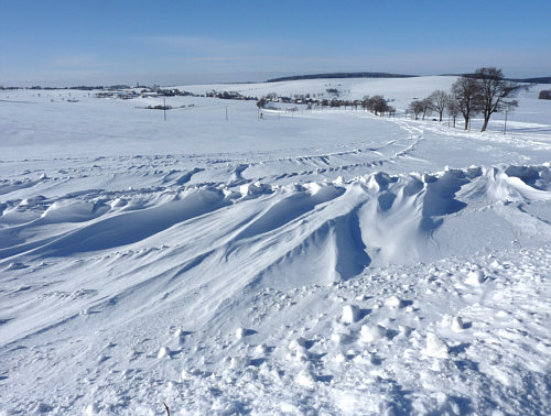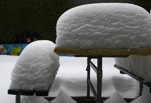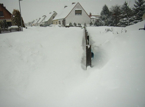 Das war ja ein ganz tolles Kalenderblatt gestern ... so viele winterliche Impressionen und viele davon ganz aktuell oder sogar extra fürs Kalenderblatt fotografiert. Über 50 Bilder gab es gestern ... und es ist so ... wenn "alle" mitmachen, dann passt das nicht in "ein" Kalenderblatt ... dann machen wir halt 2. Heute gehts also weiter. Noch ist hier nix zu finden ... aber im Laufe des Tages wird das hier wie gestern immer mehr ... und immer mehr Schnee. Denn heute ist : Live-Kalenderblatt Teil 2 Wenn ich wach bin und gefrühstückt habe. So gegen 9 oder 10 oder 11. Bis dahin empfehle ich nochmal (oder erstmals) einen Blick ins gestrige Kalenderblatt. -- Bin heute spät dran ... bitte um 12.30 Uhr wieder kommen, muss vorher noch ein paar andere Dinge erledigen und bin dann ab Mittag am PC. -- 12.29 Uhr Rena - Schnee in Düsseldorf ![]() Blick in den Garten von Renate ... und ganz oben, da fliegt gleich etwas aus dem Bild raus ;)). -- 12.37 Uhr Reia - Schnee am Aegerisee in der Schweiz ![]() "Ja, hallo ... ich möchte gerne so eine Sitzgarnitur für den Garten kaufen ... wie hoch ist die denn ?" "Im Winter viel höher als im Sommer". -- 12.38 Uhr Gudrun - Eis auf Rügen ![]() Hat das jetzt die Natur oder der Mensch gestapelt ? Auf jeden Fall klappt das nur im Winter und am besten im Winter 2009/2010. -- 12.41 Uhr Lea - Schnee in der Zentralschweiz ![]() (versperrter) Blick von der Terrasse. -- 12.43 Uhr Eva W. - Schnee in Fürth ![]() Das ist der Blick von einer Fußgängerbrücke in den Rhein-Main-Donau-Kanal. -- 13.11 Uhr Janna - Schnee Nähe Chiemsee ![]() Strukturen im Schnee, die wie moderne Kunst aussehen. -- 13.17 Uhr Elouise - Schnee in Eisenhüttenstadt ![]() Wäre hätte gedacht, dass wir hier Bilder vom Skispringen sehen werden. Hier verlässt der Skispringer gerade den Schanzentisch und gleich fliiiiieeeeegt er. -- 13.20 Uhr Sabine C. - Schnee in Niedersachsen ![]() Wenn Zweige sich mit Eis schmücken ... -- 13.24 Uhr Ruthie - Schnee in Oberbayern ![]() Ausblick und Rückblick gleichzeitig ... -- 13.26 Uhr Bettina F. - Schnee im mittleren Erzgebirgskreis ![]() Als wären es Wellen eines weißen Meeres ... -- 13.36 Uhr Angelika - Schnee im Hochsauerland ![]() Wenn der Schnee schwer ist, dann wird so mancher Ast sein Opfer -- 13.38 Uhr Angelika - Schnee in Hamburg ![]() Schwäne auf der Suche nach irgendetwas Essbarem ... auch wenn man sich zuerst fragt, was man denn Essbares auf einem zugefrorenen See finden kann ... aber das ist gar kein See, das sagt einem nur das Auge (weil "wenn Schwäne, dann See") ... es ist eine verschneite Wiese. -- 13.40 Uhr Elisabeth - Schnee in der Mitte Bayerns ![]() Kleiner Blick in Richtung Dach ... es hat sich darauf ein Kunstwerk verweht. -- 13.43 Uhr Gabi - Schnee in der Lüneburger Heide ![]() Blick in Richtung Gartenhaus ... Gabi meint "dass die Bank am Teich steht, wissen nur Insider" ... *gg*. -- 14.50 Uhr Patty - Schnee in Homburg ![]() Heute gibts in Homburg kaum noch Schnee (ich muss das ja wissen, wohne ja nicht weit weg), aber vor ein paar Tagen hüllten sich noch die Straßenschilder in Schweigen. -- 14.52 Uhr Chantal - Schnee in Schleswig-Holstein ![]() Das ist Chantals Mann ... gerade noch in der Sauna und nun im Schnee ... au wei, welch eine Abkühlung. -- 14.56 Uhr Monika - Schnee im bayrischen Wald ![]() Mehr als viel ist das ... eine Wunderwelt, wie sie nur durch den Schnee entstehen kann. Ganz ohne Schnee hätte dieses bestimmt nicht den gleichen Reiz. Aber "viel" ist das schon ... und sogar mehr als das. Kann natürlich sein, dass man im bayrischen Wald ganz andere Maßstäbe für "viel" hat. -- 14.58 Uhr Jutta (Netteslandei) - Schnee im Sauerland ![]() Eindeutig: im Sauerland landen gerade einige Schnee-Ufos ... und die sind sowieso schuld an allem ;)). -- 15.00 Uhr Inge W. - Schnee in Hamburg ![]() Blick auf Inges Garten ... dort ist es bestimmt auch im Sommer schön. -- 15.03 Uhr Karen - Schnee in Weißgradnichtwo ![]() Karens thailändische Schwiegertochter erlebt zum ersten Mal Schnee in solchen Mengen und übt nun das gemeinsame "Schneekugeln", "Schneetragen" und "Schneemannbauen". -- 15.06 Uhr Lieselotte - Keinschnee in Italien ![]() Für alle, die keinen Schnee mehr sehen mögen, gibts nun den aktuellen Blick aus dem Fenster von Lieselotte (Nonnalotti). -- 15.09 Uhr Britta - Schnee in Saarland ![]() Die Hecke freut sich so über den Schnee, dass sie die "Welle" macht *gg*. -- 15.11 Uhr Ully - Eis in Niederösterreich ![]() Hinterm Eis wohnt leis ein Frühlingsahnen ... -- 15.12 Uhr Gabi K. - Schnee in Sinzig ![]() Herr und Hund beim Frühsport oder Ringkampf oder Schneeballett. -- 15.16 Uhr Konny - Schnee in Berlin ![]() ![]() Wenig glücklich ist, wer vergisst ... dass das Dachfenster noch offen ist ... -- 15.17 Uhr Croli - Schnee in weißgradnichtwo ![]() Ein Bild von vor ein paar Tagen ... heute ist nicht mehr viel mit weiß ... -- 16.05 Uhr Lucie - Schnee in Duisburg ![]() Hey, das gibts ja nicht ... gestern gabs ein Bild von Marlene mit dem Toeppersee drauf, und MissLu war auch dort ... oben das ist der Weg vom kleinen zum großen Toeppersee. Hey Ihr Zwei ... wie wäre es mit "gemeinsam laufen" ? :)) -- 16.08 Uhr Peter - Schnee in Bochum ![]() Wie groß doch ein Baum sein kann ... und wie klein im Vergleich eine Bank. -- 16.12 Uhr Dagmar S. - Schnee in der Oberpfalz ![]() Diese Figur steht vor der Stadtbibliothek im Amberg ... "lesen ist cool" ... *gg* -- 16.13 Uhr Erika - Schnee in Leipzig ![]() Tauwetter ... und wie durch ein Wunder kommen die Brauntöne wieder. "Unterm Schnee ist noch Farbe ..." -- 16.16 Uhr Renate A. - Schnee im Pinzgau ![]() Renates Worte "... als ich vom Wald herauskam – und ich mich dem Bauernhaus näherte, das auf einer Anhöhe liegt, kam mir die Welt wie im Tiefschlaf vor. Irgendwie mochte ich die Stille, die ich nicht nur wahrnahm, sondern auch sah." -- 18.09 Uhr Ulrike - Schnee in der Fidei ![]() Nichts ging hier mehr am 2. Februar ... aber wo ist die Fidei ? So nennt man, wie es aus