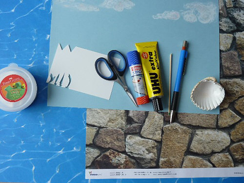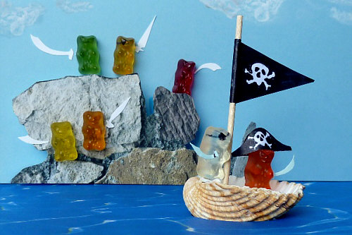 Auwei ... Kampf ... mit Schwertern und Totenköpfen ... ... aber sowas muss ja vorbereitet werden. Wir brauchen bedruckte Pappen Papier eine Muschel 1 Stäbchen ![]() Und dann noch Schere Kleber Stift Nun wir ein Streifen Pappe als Abstandshalter auf die Wolkenpappe geklebt ... darauf dann die Felsen. ![]() Dann gehts los ... an die Stäbchen wird eine Totenkopfflagge geklebt, in die andere Pappe ein rundes Loch geschnitten, damit das Boot auch im Wasser schwimmt. Flagge, Hut und Augenbinde wurde mit einem Stift gemalt. ![]() Schwerter kriegen die Piraten natürlich auch. Aber nicht nur die, sondern die auf den Felsen auch ... ... und dann kann das Säbelrasseln auch schon beginnen: ![]() Oder ist das gar nicht Freund und Feind, sondern auf den Felsen steht die Besatzung, die mit dem Beiboot zum Piratenschiff gebracht wird ? Man weiß es nicht ... aber ich könnte ja mal die Bettina F. fragen, denn die hat hier geschnitten, geklebt, gedacht, fotografiert. Ha ... ich weiß es ... das sind alles Freunde ... denn ich habe gerade den Feind gesehen ... |