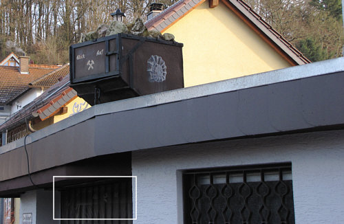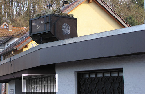 Foto-Spaziergang Teil 4 (Teil 1, Teil 2, Teil 3) Dann wollen wir doch mal ein paar Schritte weiter gehen ... ... vor diesem Schild standen wir ... ![]() ... und diese rätselhafte Lore ... ![]() ... will uns was genau sagen ?? Sie will "Hingucker" sein ... Eyecatcher ... Augenfänger. Damit man stehen bleibt und sich fragt "warum steht denn die Lore auf dem Dach". Ein paar Meter daneben ist dann eine Tür und an der Tür ein Schild: ![]() Geschenkartikel aus Edelsteinen und unten hat der Zahn der Zeit schon an den Wörtern Mineralien und Fossilien genagt ... passt ja ;)). Zu diesem Zeitpunkt war ich aber schon nervös ... denn Beate hatte kurz vorher "komm mal her, das musst du sehen" gerufen ... ich aber wollte zuerst das Schild fotografieren, damit ich dieses Bild nicht vergesse ... solche Infobilder brauch man, wenn man einen Spaziergang zeigen will. Auf der Lore stehts übrigens auch: ![]() Schnellschnell das Bild ... und dann schnellschnell gucken, was Beate gesehen hat. Herrje ... wie klasse ... und war sogar da oben auch schon zu sehen ... ![]() ... und zwar da: ![]() Ich mach das mal heller: ![]() Aha ... das ist ein Garagentor und das ist bemalt. Auch hier ists zu sehen ... ![]() ... und in seiner vollen dreidimensionalen Schönheit sieht das so aus: ![]() Wow ... ich fotografiere ja jedes bemalte Garagentor, das ich sehe, aber das hier ist eine Meisterleistung, die man sich ohne Drumherum anschauen muss: ![]() Alleine dafür hat sich der Spaziergang fotografisch schon gelohnt. Was jetzt aber nicht heißt, dass wir nun wieder zurück zum Auto gehen ;)). Wir laufen weiter ... ganz vorsichtig ... gefährlich reifglatte Straße in diesem Ort, bitte aufpassen beim Laufen ... auch wenn ... ![]() ... die Straße so harmlos aussieht ... sie ist es nicht. Auch die Bewohner des Ortes sind nicht harmlos ... ![]() ... Spaziergänger werden hier mitunter gefangen und dann teilweise als Zierde an die Tür gehängt ... oder so ... ;)). Das nächste Bild ... ![]() ... dürfte ich gar nicht zeigen, schließlich ist sowas nur rund um Weihnachten vorzeigbar. Im Februar zeigt es nur, dass die Bilder nicht ganz aktuell sind ;)). Okay ... der Spaziergang war ja am 26. Dezember ... aber macht ja nix, ist doch schön, wenn man sich bebildert erinnern kann. Und außerdem: morgen ist heute schon gestern. Warum hatte ich eigentlich dieses Bild ... ![]() ... fotografiert ? Ich vermute, weil auch hier (wie in so vielen "modern gestalteten" Gärten) aus Bequemlichkeitsgründen die Erde durch Steine auf Folie ersetzt wurde. Da wächst dann kein Kraut mehr, krabbelt kein Wurm mehr und kein Vogel findet etwas zu essen. Aber wer will schon die Natur, wenn sie natürlich ist ? Das nächste Garagentor ... ![]() ... auch ganz nett ... mit praktischer austauschbarer Deko. Was dort wohl jetzt dran hängt ? Hey, da fällt mir gerade ein, dass ich ja im Frühjahr, wenn alles grün ist, den gleichen Spaziergang machen könnte und schauen, wie sich die Bilder verändern ... und "nachher"-Bilder fotografieren. Ein Fenster spiegelt mich an ... ![]() ... sowas zieht meinen Blick auf sich. Ich nähere mich dem Fenster ... und finde einen Außerirdischen ... [ wir laufen bald weiter ] |
