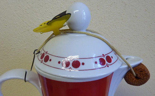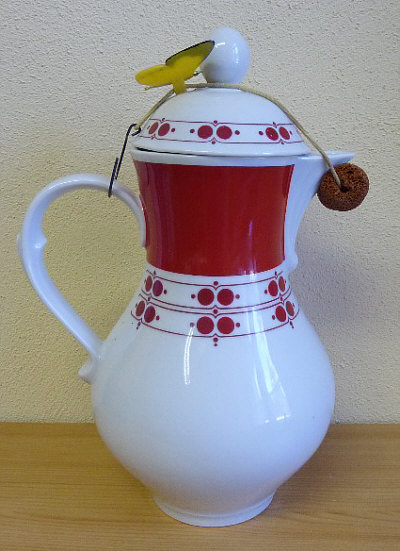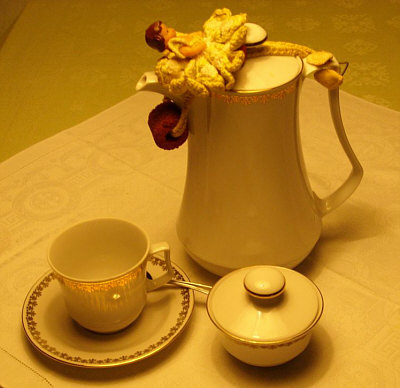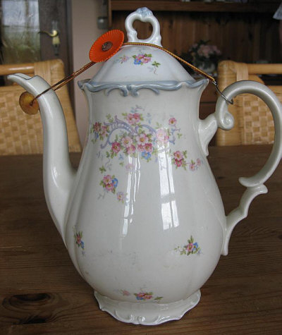 Ich bin sicher, dass viele von Euch erraten haben, worum es gestern ging. Ich hatte im Lichtblick geschrieben, das ich etwas suche und ich habe auch einige Mails bekommen, was ich denn suchen würde. Das Dingsda kennt ja fast jeder, aber ebenso hat fast jeder sowas nicht mehr. Aber immerhin schrieb mir die Jutta Huhuu... ich weiß genau was du meinst... Meine Oma hatte so ein Dings ...ich frag aber heute abend mal meine Schwiemu :-))). Schwiemu heißt Schwiegermutter und Jutta besuchte die Dame dann auch. Und schon hatte ich ein Bild von dem was ich suchte: ![]() Nee, nicht diese Kanne ... sondern das Dingsda oben: ![]() So sah übrigens meine Mail an die, die sich gemeldet hatten, aus: Danke fürs Melden ... was ich suche, ist ein Bild von einem Tropfenfänger. Dieser besteht aus: Gummi, an dem ein Dekoschmetterling und ein Schaumstoffröllchen befestigt ist. Das Gummi hat man über den Kaffeekannendeckel gezogen und das Schaumstoffteil spannte man vor den Ausgießer, damit es die runterlaufenden Tropfen auffangen konnte. Ein Schmetterling war auch dran, diente aber nur zu Deko. Wenn Du noch sowas hast, bitte so oder an der Kanne fotografieren und mir schicken ... danke :)). herzliche Grüße Engelbert Tropfenfänger ... den hätten wir als schon mal ... aber Schmetterling noch nicht. Oben ist ja so ein rundes Dingsda dran ... aber mal sehen, was Karo für mich hatte: ![]() Auch kein fliegendes Tier, sondern eine liegende Lady (die gerne Kaffee trinkt ;)) ): ![]() Die Bettina hatte mir auch gemailt: ![]() Ja ... da isser ja ... der Schmetterling: ![]() ![]() Da lacht das Herz von jemand, der "ich suche" rief und dank den Seelenfärblern finden durfte :)). Jutta fand ihn bei der Schwiegermutter. Karo sagte "mein Vater (86) wirft nichts weg, da könnte man fündig werden". Bettina fand ihn bei der Mutter einer Kollegin. Und nun die Elke ... die mailte mir "Ich kenne diese Tropfenfänger noch von meinen Omas, die leben aber beide nicht mehr und ich habe keine von den Tropfenfängern behalten. ABER: ich habe eine Kollegin und die hat eine Freundin und die hat sich neulich Tropfenfänger gekauft, den ganzen Vorrat, der im Geschäft vorhanden war. Und davon habe ich einen zum fotografieren bekommen, also neu und unverbraucht. Dazu habe ich mein Lieblings-Erbstück von meiner Oma - diese Kanne - aus dem Schrank geholt. Eine tolle Aktion, die Menschen und Sachen zusammenbringt". Ja, das stimmt ... da hab ich doch indirekt Besuche organisiert, Erinnerungen wachgerufen und Menschen suchten um 3 Ecken und fanden auch. Und dazu gibts die Erkenntnis, dass diese Tropfenfänger zwar Nostalgie sind, aber auch ganz neu zu kaufen gibt. ![]() ![]() Das wars aber noch nicht von Elke ... eine knappe Woche später war sie im Dorfmuseum und fotografierte diese Dame da: ![]() Ja hollaröduljö ... darauf einen Jodler :)). Das war wieder so eine richtig schöne Sache ... danke an Alle, die sich gemeldet haben und ein extra Dankeschön an die, die dieses "Dingsda" wirklich noch gefunden und fotografiert haben :)). |