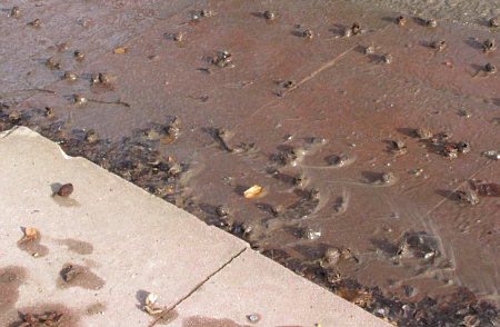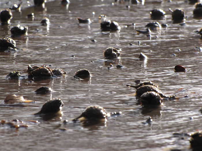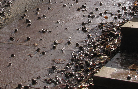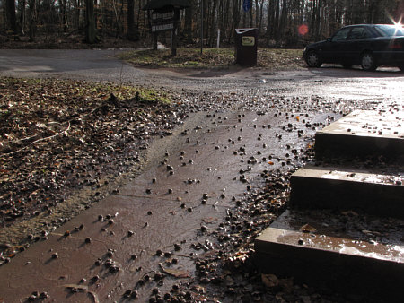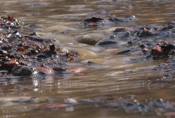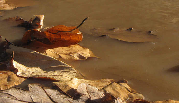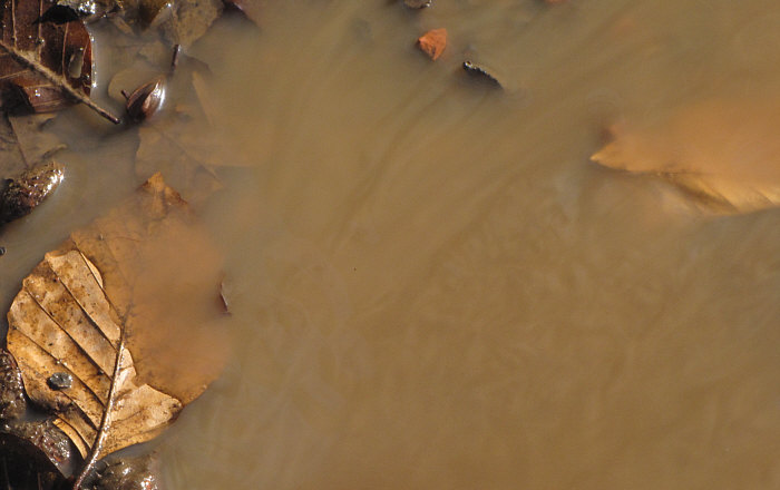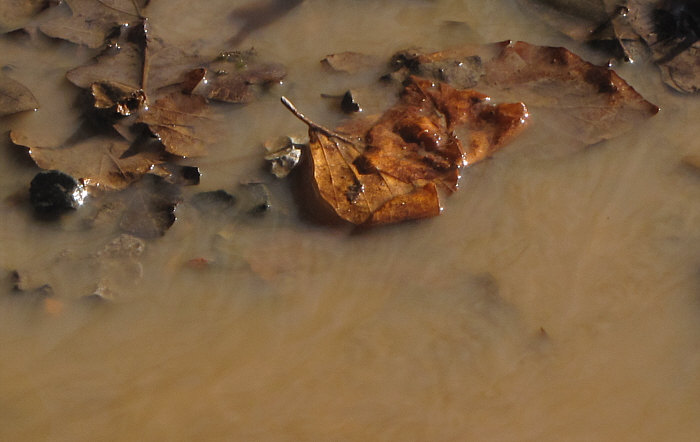 Heute ist um 18.32 Uhr Frühlingsanfang. Und es ist auch richtig mild geworden. Ein Frühling nach einem Winter, der wirklich einer war. Weil er jetzt endlich geht ... gibts ein Abschiedsgeschenk an ihn. Ein Geschenk mit Schleife, auf der alles fließt steht. Es gibt da so ein Fließen, über das fast jeder brummelt und das eher genervt-ärgerlich ... ... weil da ein Parkplatz unter Wasser steht: ![]() Da vorne rechts ist das Gelände abschüssig ... ![]() ... da fließt das Schmelzwasser von dannen. Man kann jetzt - schimpfen, weil man nasse Füße kriegt - schimpfen, weil der Parkplatz in einem so schlechten Zustand ist Man kann auch aber - sich bücken und das Wasser fotografieren: ![]() Die wilden Stromschnellen vom Parkplatz. Das Wasser läuft ja weiter ... in Richtung einer Treppe und dort dann seitlich vorbei: ![]() Von der oberen Treppenstufe sieht man das besser: ![]() Da liegen so kleine Dingensda rum und weil das Tauwasser recht kräftig fließt und auch nicht gerade klar ist, sieht das richtig gut aus: ![]() Als hätte die Natur ein Faible für moderne Kunst. ![]() Ganz spannend ist es aber, von weiter unten zu fotografieren: ![]() Auch da wird, wenn die Kamera knapp über dem Boden ist, aus dem fließenden Wasser über Kleinzeugs von den Bäumen eine neue Welt: ![]() Das Wasser fließt ja weiter ... über den Waldboden ... ![]() ... bis es dann im nahen See ertrinkt. Ist jetzt dieser Waldboden nur Schlamm, Matsch, Blätter, Wasser ... ... oder ist er vielleicht auch Fotoobjekt ? Ja, das ist er: ![]() ![]() ![]() ![]() Alles fließt ... ... das war ein kleiner Gruß an den scheidenden Winter, denn der hatte schließlich Eis und Schnee gebracht, dessen Tauwasser wir nun mal mit anderen Augen gesehen haben. Wir sind übrigens gar nicht weit gekommen ... vom Auto aus höchstens 20-30 Meter weit ... aber das ist nun mal so, wenn die Fotomotive so nah sind. Man könnte auch "wie siehts denn hier aus, alles nass, iiihh wie soll ich da laufen" sagen und dann einfach nur einen möglichst trockenen Weg suchen und neben den Schmelzwasser seines Weges gehen. Man kann aber auch sagen: hey, welche tollen Welten begegnen mir denn da :)). |
