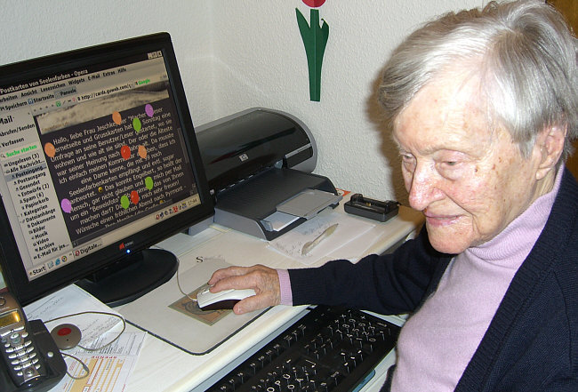 Ich möchte Euch heute jemand vorstellen ... das ist Frau Jeschke: ![]() Frau Jeschke schickt und empfängt gerne Seelenfarbengrußkarten. Das gibts ja öfter ... aber Frau Jeschke ... ist 99 Jahre alt und somit die älteste mir bekannte Seelenfarbenbesucherin. Ich drücke ihr alle Daumen dieser Welt, dass sie bei weiterhin so guter Gesundheit am 8. November ihren 100sten Geburtstag feiern darf. |
