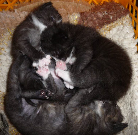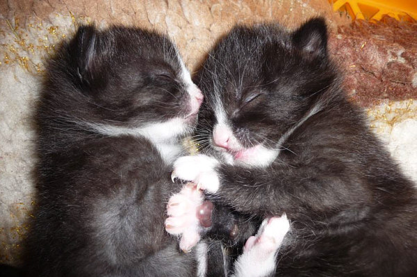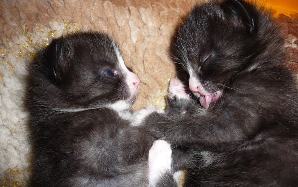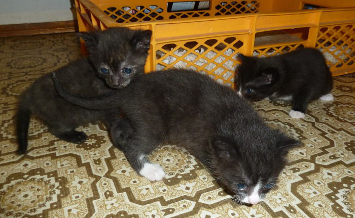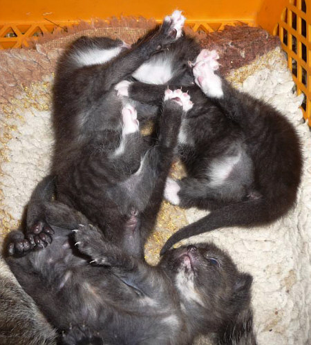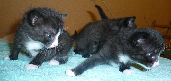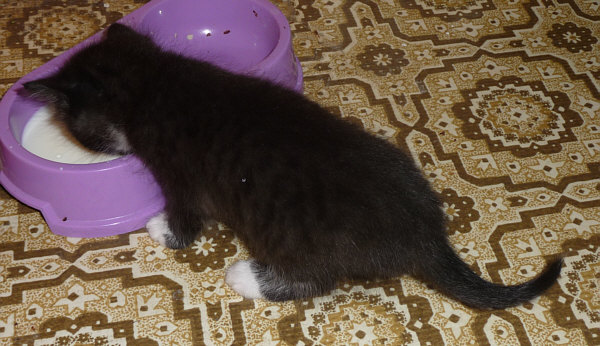 Die kleinen Katzen können schon selbst aus dem Napf trinken.