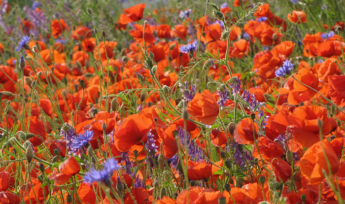 Einzelne Kornblumen standen dazwischen ... kleine blaue Tupfen in der