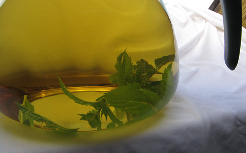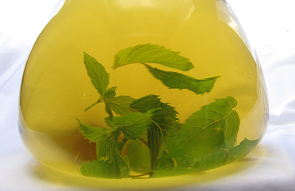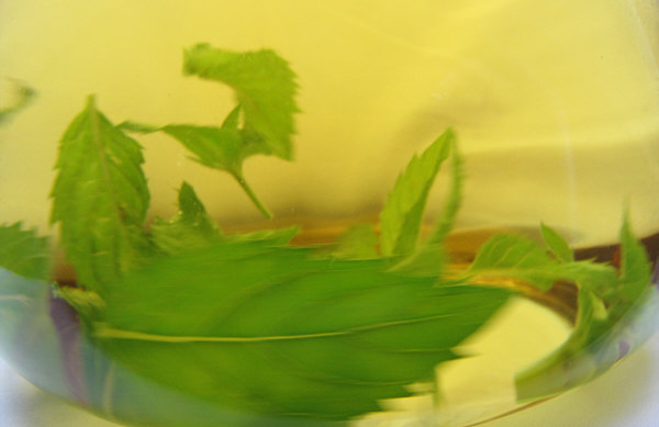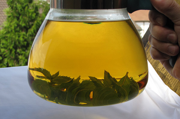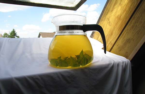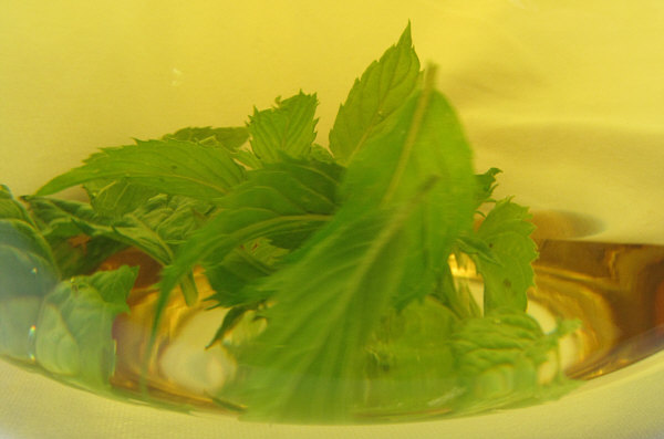 Welch schöne Farbe doch Pfefferminztee hat.