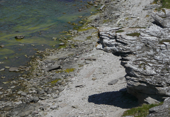 Hinter uns ... das Auto ... vor uns die Steine ... und nun laufen