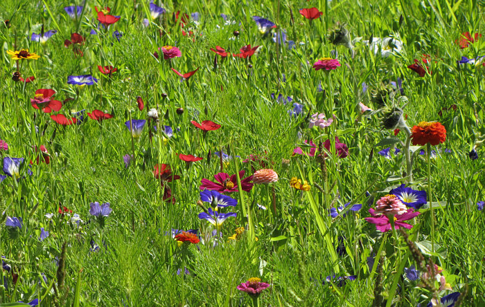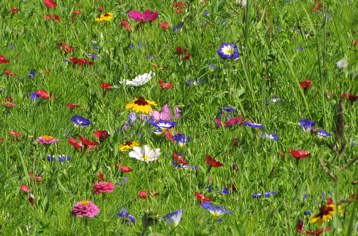Es ist in dieser Blumenwiese kaum möglich, eine Blüte vor nur Grün zu
