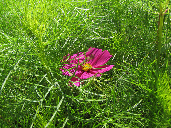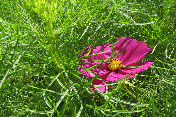 Ein Cosmea blüht nicht weit entfernt.
