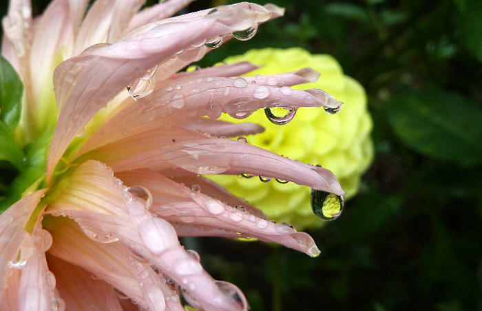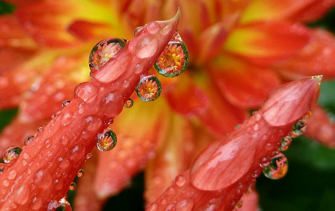 Zur ganz großen Kunst wird es, wenn sich Blumen in den Tropfen spiegeln.