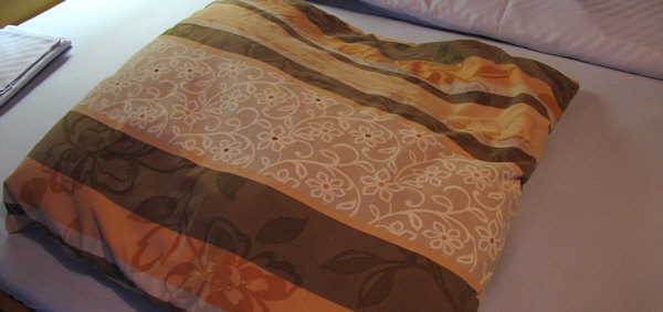 Guckt mal auf das Bild ... rechts ist die Decke und oben das Kissen.