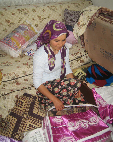 Ein junges Mädchen zeigt uns ihre Aussteuer,