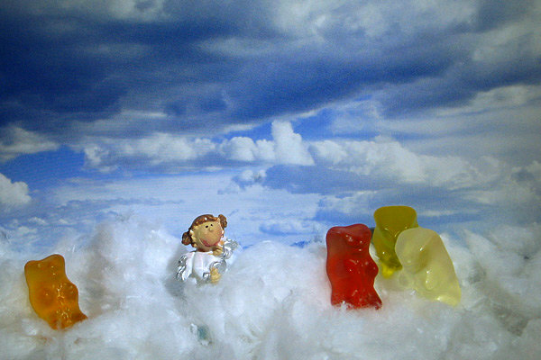 ![]() So sehen wir den Gummibärenhimmel ... aber nur wir. Und die Helga-Ingo, die Himmelsmacht. Für uns ist das das Bild eines Kalenders, Watte, Engel, Bären ... ... doch für die Bären selbst ist das einfach nur himmlisch: ![]() Nur ganz brave Gummibären kommen in den Himmel und dürfen dort Schwester Gummigunde kennen lernen. -- Woran sterben denn ungegessene Gummibären ? An Liebeskummer, Altersschwäche (sagt ein alter Bär zum anderen "das Leben ist hart und ich auch") ... und an der "ich ess nix Süßes mehr"-Krankheit der Menschen. Aber sie sterben nie durch Feuer ... denn ... ![]() ... die Gummibärenfeuerwehr lässt nix anbrennen. Helga R. ist übrigens die Leiterin der freiwilligen Feuerwehr in Bärenbach. Wie ist das eigentlich so, wenn ein Bärchen aus den besagten Gründen stirbt. Nicht danach, wenn es schon im Himmel ist, sondern das Sterben an sich. Das Hinauffliegen oder Hinlaufen. Bei Tieren sagt man ja "Regenbogenbrücke" und Bären sind ja auch Tiere. Und richtig, auch diese gehen über die Regenbogenbrücke ... |
