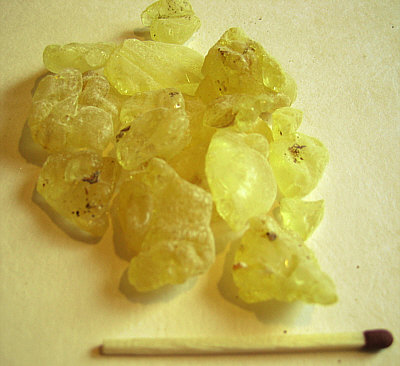 Dieses Harz ist normalerweise nur erbsengroß (Kleinvieh macht hier auch