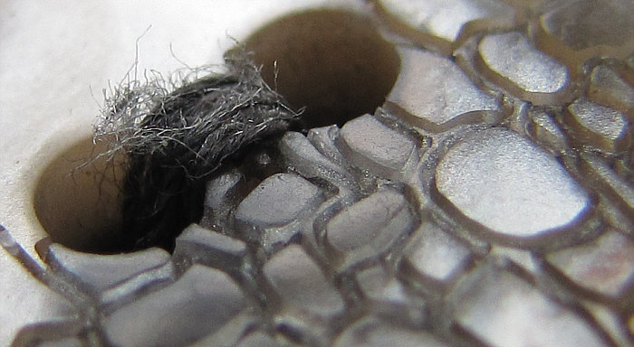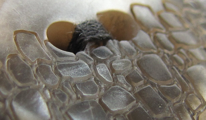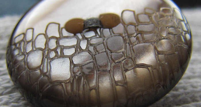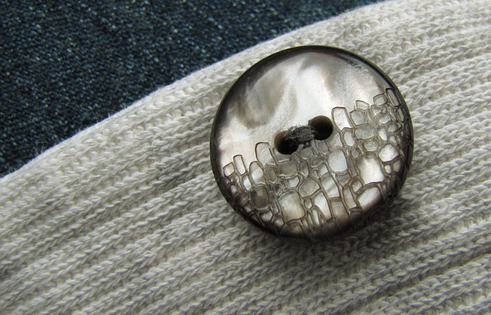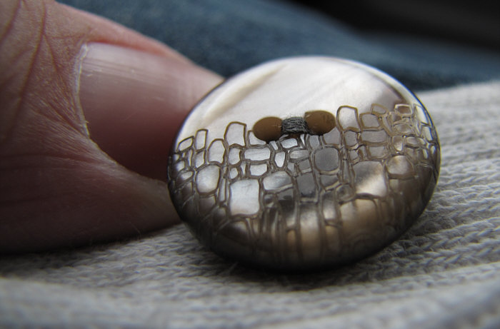 Je nachdem, wie das Licht drauffällt, schimmert der Knopf anders: