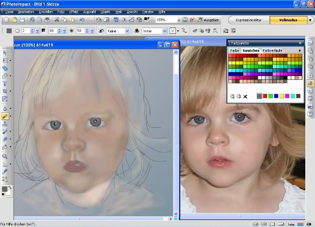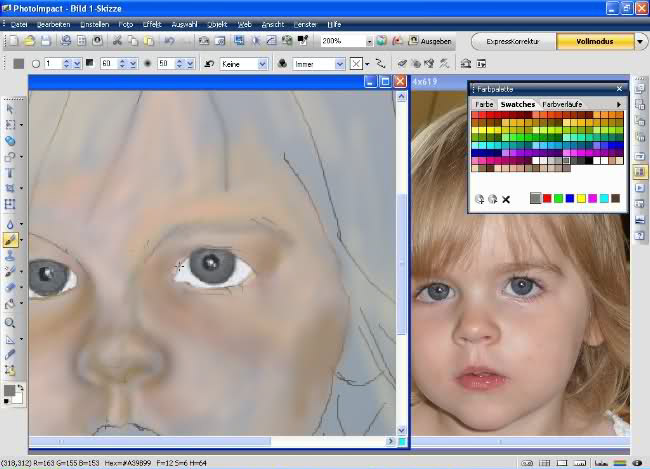 Nun wird die Skizze eingebunden und es beginnt das Ausmalen.