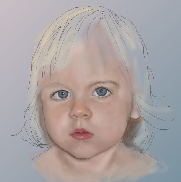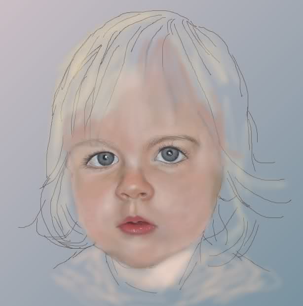 Jetzt fehlen noch die Haare. Die male ich mit dem Bürstenwerkzeug.