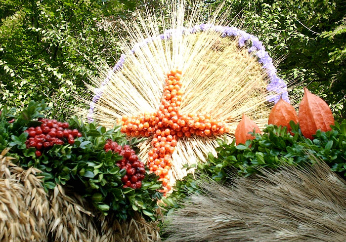 Darunter wurden dann die Früchte von Feld und Garten aufgebaut.