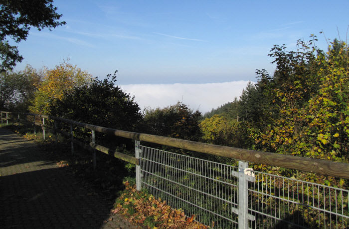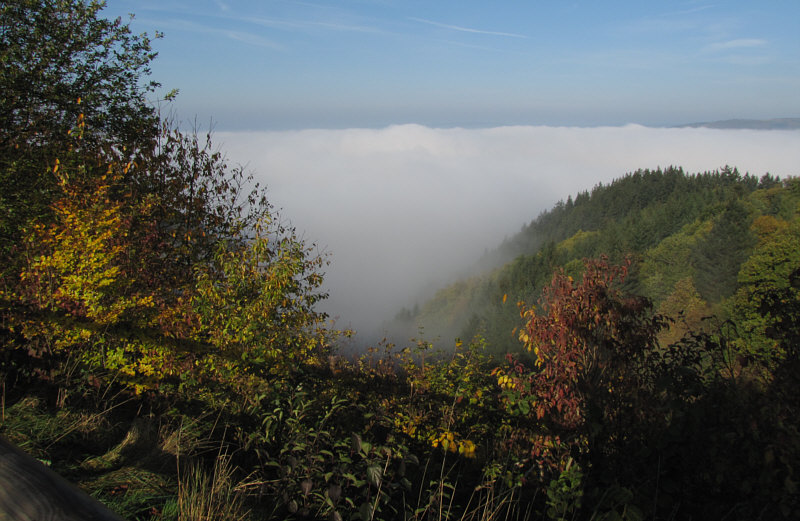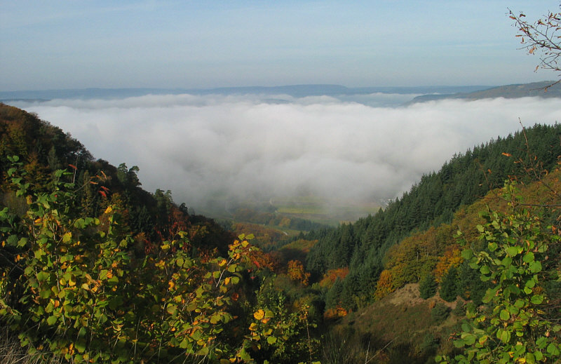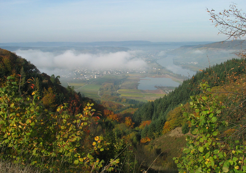 Wir blicken auf das Moseltal ... das unter dem Nebel verborgen bleibt.