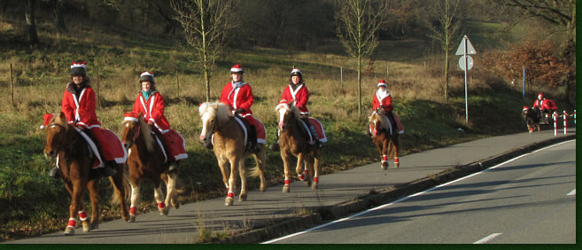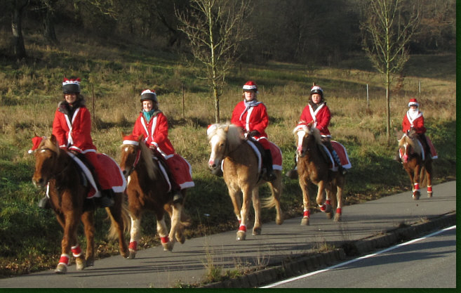 Weihnachtsmänner und Frauen hoch zu Pferde ... welch wunderbarer