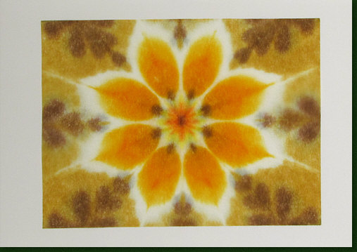 eingetaucht in die Farben, dann gebügelt und auf die Karte aufgeklebt".